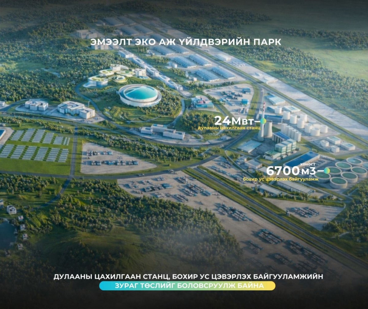 Нийслэлийн 16 мега төслийн нэг Эмээлт эко аж үйлдвэрийн паркийн дэд бүтцийн чухал бүрэлдэхүүн болох 24 МВт дулааны цахилгаан станц болон бохир ус цэвэрлэх байгууламжийн иж бүрэн зураг төсөл боловсруулах ажил үргэлжилж байна. Уг төслийг түлхүүр гардуулах нөхцөлөөр барьж байгуулах юм.