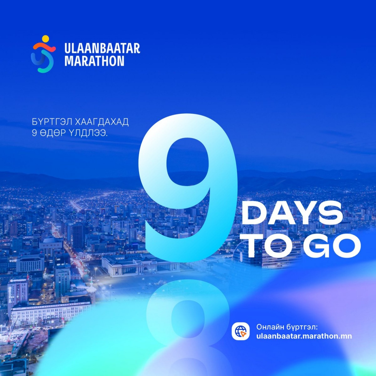 “Улаанбаатар марафон-2026” олон улсын гүйлтийг тавдугаар сарын 23-нд Д.Сүхбаатарын талбайд зохион байгуулна. Марафонд гүйх оролцогчдыг тавдугаар сарын 1-ний 17:00 цагт хүртэл бүртгэнэ. Оролцогчид Hipay аппликейшн болон ulaanbaatar.marathon.mn цахим хуудсаар дамжуулан бүртгүүлэх боломжтой. Өнөөдрийн байдлаар 13 мянга гаруй иргэн оролцохоор бүртгүүлээд байна.